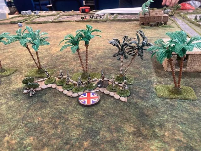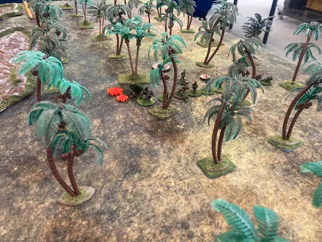 On the Brits right flank in the Rubber Plantation (palm trees standing in for rubber trees), both sides exchange fire and each take a casualty